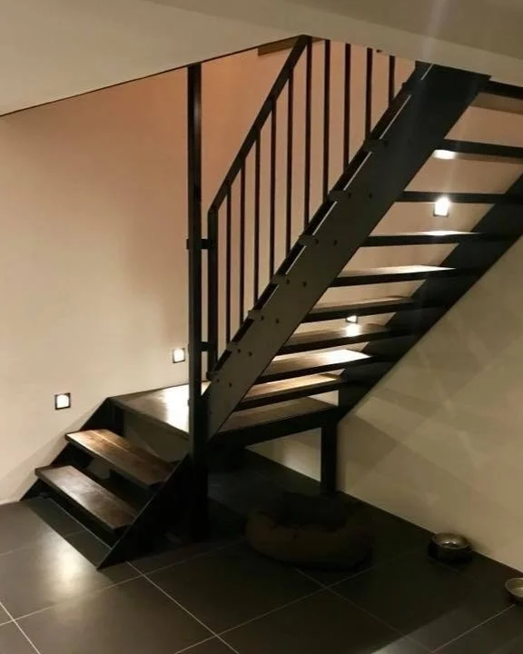 Speciallavet trappe i pulverlakeret stål designet til at forene funktion og æstetik. Med rene linjer og materialer i høj kvalitet er trappen både en arkitektonisk detalje og en solid løsning, der passer perfekt ind i det moderne rum.